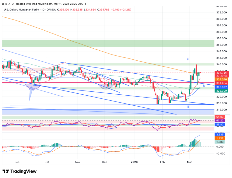 A következő időszakban emelkedésre számítunk: az elsődleges célár 335,57, a másodlagos 339,10.