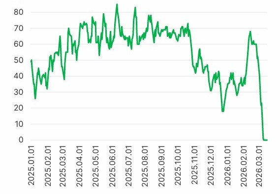 A Hormuzi-szoroson áthaladó hajóforgalom (hétnapos mozgóátlag)