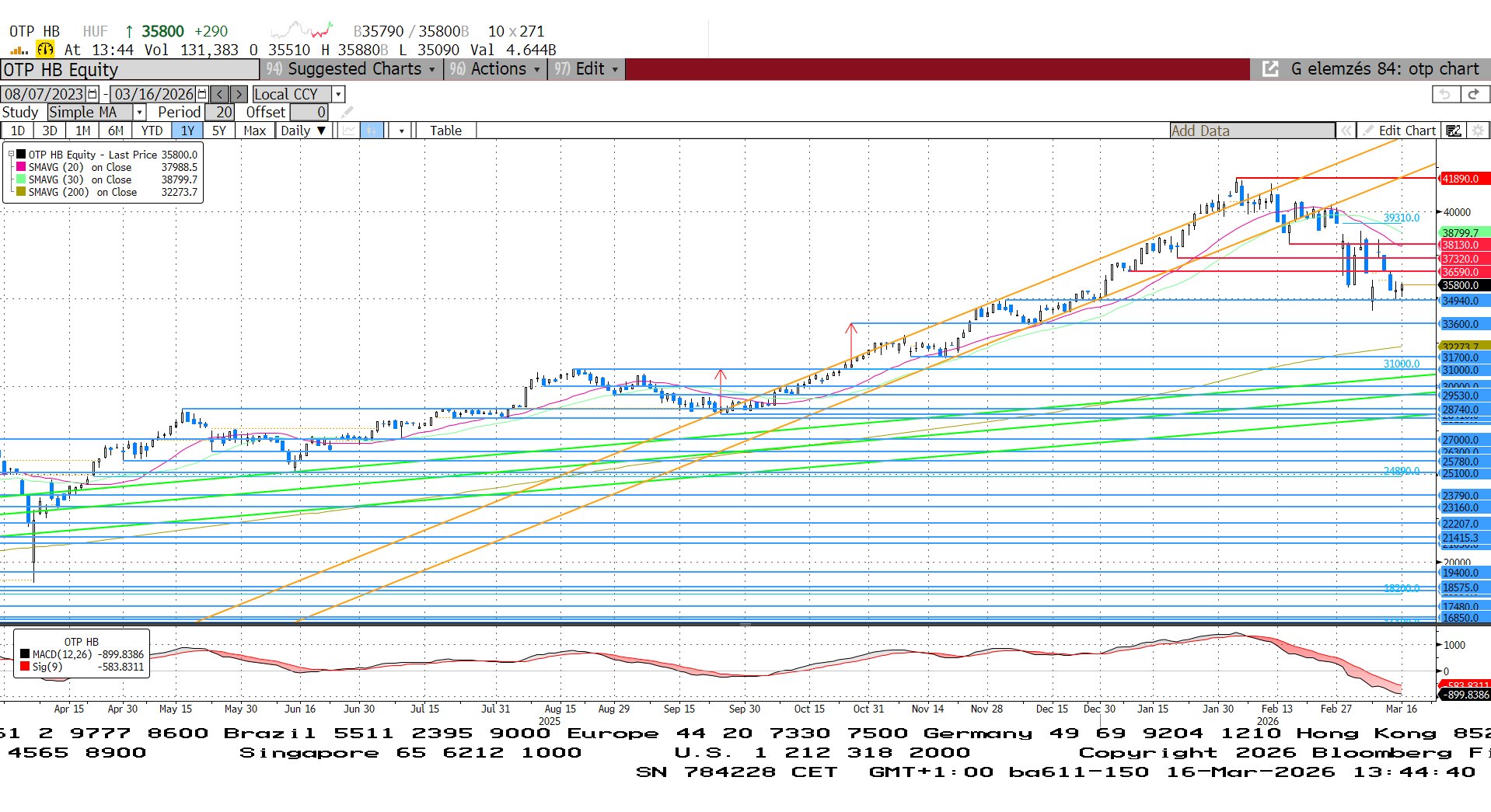 Egy héttel ezelőtt jelentős eséssel indította a hetet az OTP, de aztán sikerült felpattannia. A hét második felében ismét lefelé vette az irányt az árfolyam. Hétfőn ismét emelkedni próbál a papír a 34.940 forintos támaszról. Ellenállást a 36.590 forintos szint jelenthet.