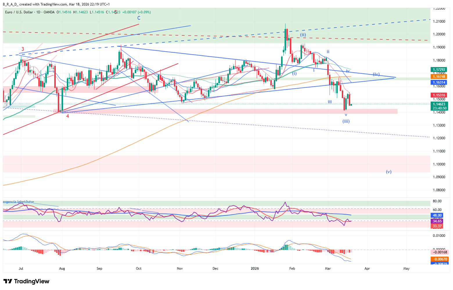 Az előttünk álló napokban emelkedésre számítunk, az elsődleges célár 1,1490.
