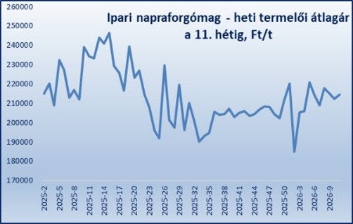 A 11. hétig látjuk a piaci árakat. Két hete a napraforgó hazai felvásárlási átlagára 214,5 ezer forint volt tonnánként. (Ez egyébként az egy évvel korábbinál 8 százalékkal alacsonyabb.) Ebben egyszerre látszik a kőolajárak, a fokozott hangulat, a feldolgozói kereslet, a várnál kisebb termés és az argentin árú Európába érkezésének hatása. Ezek egyenlege a túlkínálat ellenére az árak oldalazása. S hogy merre tovább? Amennyiben – várakozásomnak megfelelően – húsvét környékén az iráni konfliktus enyhül, akkor a napraforgóárak nyomás alá kerülnek, ha a válság elhúzódik, akkor folytatódik az oldalazásuk.