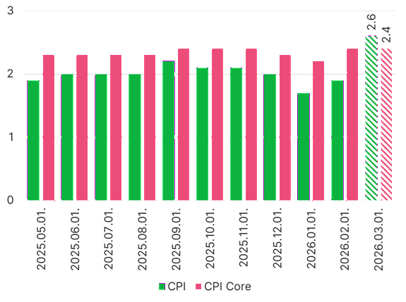 Kedden közli az Eurostat a harmadik havi inflációs adatokat a valutaövezetre vonatkozóan. A piaci várakozások szerint a februári 1,9 százalékról 2,6 százalékra emelkedhet a headline index. Az ugrás gyakorlatilag egy az egyben az energiaáraknak tudható be: a volatilis tételektől megtisztított maginflációs mutató a konszenzus szerint változatlanul 2,4 százalékon maradhatott márciusban a második hónaphoz képest.