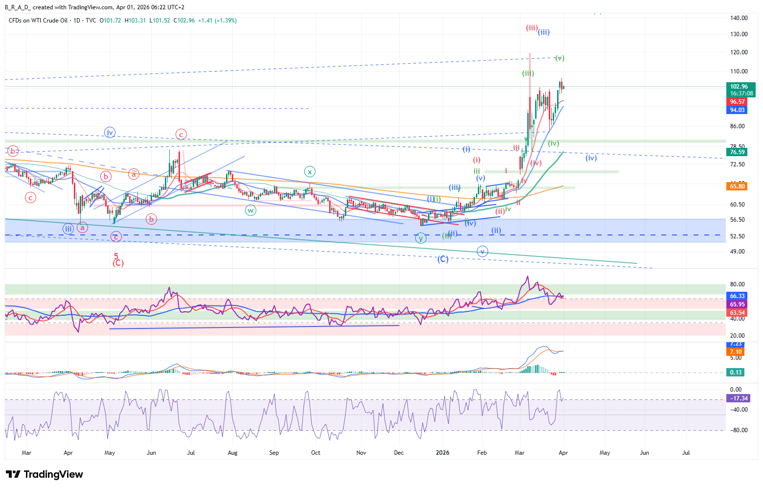 Az északi irányú mozgás vagy egy széles flat korrekció második alhulláma vagy egy kisebb 5. hullám. Az első verziónak adjuk jelen pillanatban a nagyobb esélyt. Bármelyik említett verzió is fut, az a következő időszakban további emelkedést hozhat, amely 110 fölé viheti az árfolyamot.