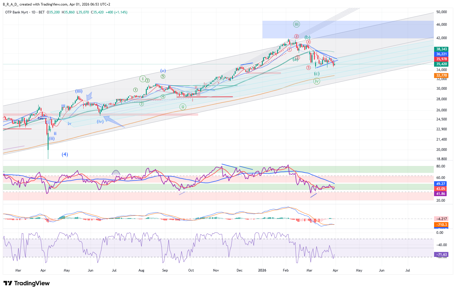 Az árfolyam letörte a háromszög alsó szárát: OTP - 2026/25 - napi