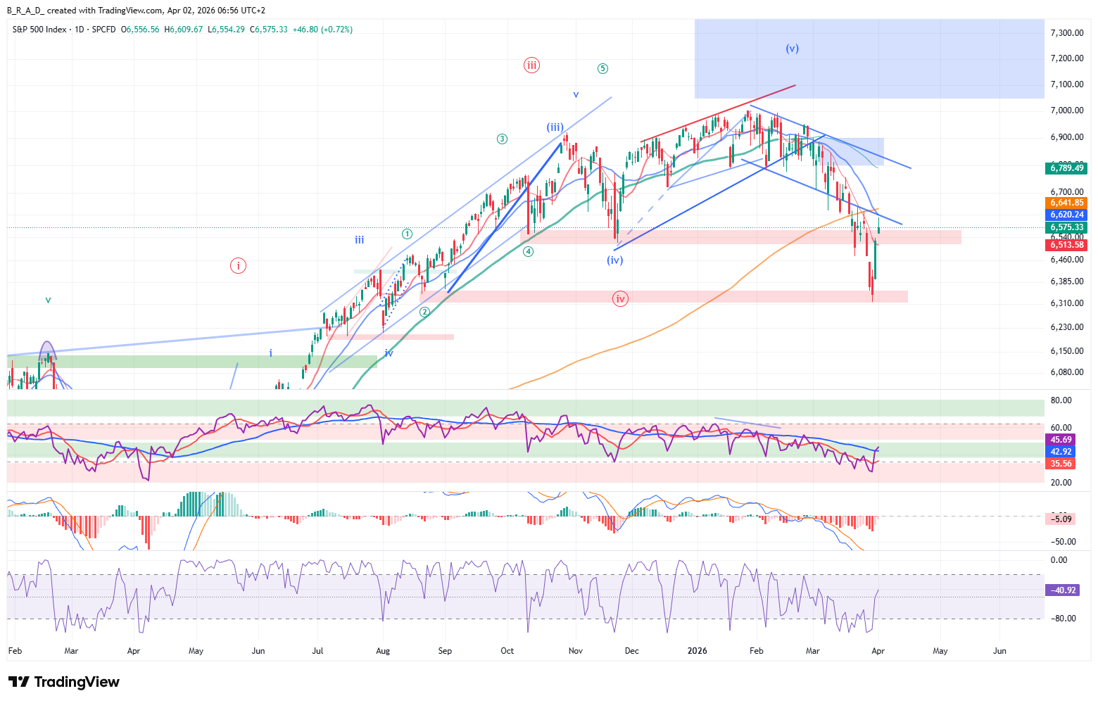 Erős emelkedés érkezett az elmúlt két nap a piacra, melynek során az index felért a korábbi eső csatorna aljáig. Az emelkedés az RSI bear zónájából indult, így az elsődlegesen korrekcióként értékeljük a mozgást. A csatorna alj erős ellenállás, mely aktuális a 200 napos mozgóátlag szintjével esik nagyjából egybe. Lefordulás esetében kialakulhat egy short indikátor-konfiguráció, amelynek az elsődleges célára a támaszhoz mutat (6.330).