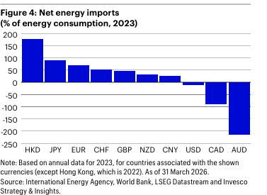 Néhány ország/régió energia kitettsége, nettó importja a teljes fogyasztás arányában