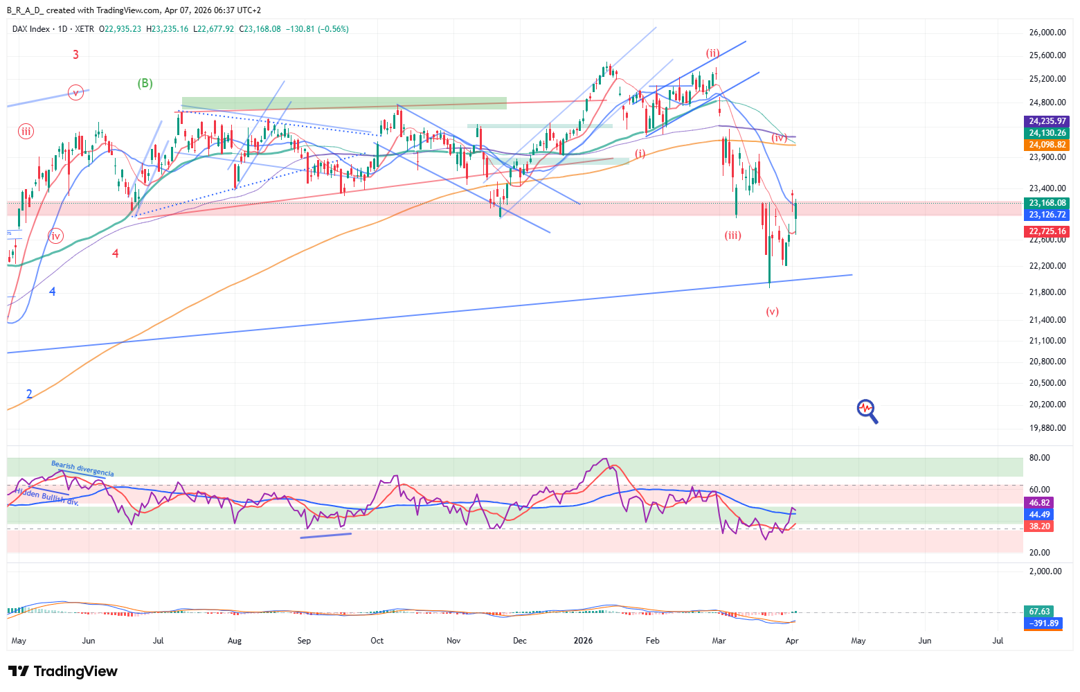 A következő napokban esésre számítunk, az elsődleges célár 22.960, a másodlagos 22.650.