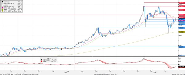 Az idei évben óriási kilengések jellemzik az arany árfolyamának alakulását. Az iráni háború kitörése óta nem tudta betölteni menedékeszköz szerepét az emelkedő kamatemelési várakozások miatt. Most azonban, hogy csillapodnak a feszültségek, visszaestek a kamatemelési várakozások, ismét javul az arany megítélése, amit a múlt héten adott vételi jelzés is támogat.