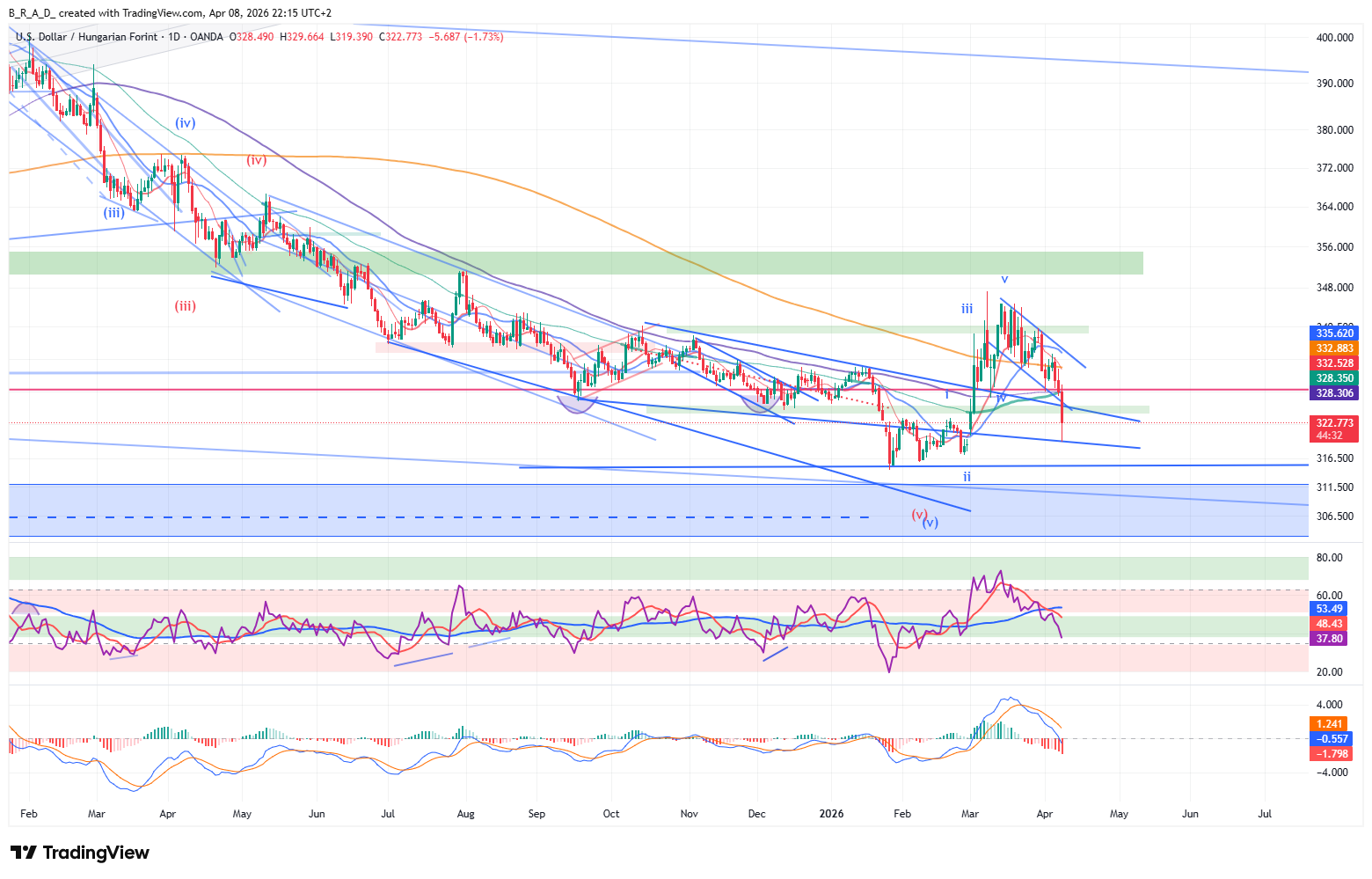 Esés a támaszig: USD/HUF - 2026/28 - napi