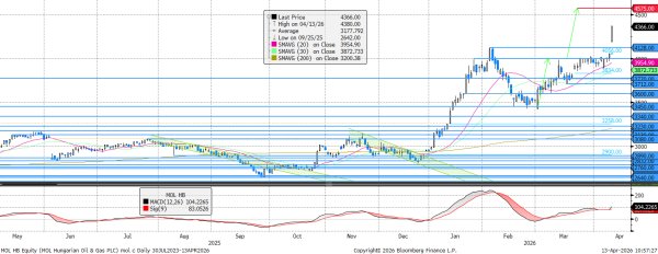Az elmúlt időszakban a politika erősen rátelepedett az energetikai kérdésekre, és a befektetői bizalomnak jellemzően nem tesz jót, ha megjelenik a politika. Ennek egyik példája az olaj tranzit szempontjából kulcsfontosságú Ukrajnával és Horvátországgal megromlott külpolitikai viszony. Ezen a téren akár rövidtávon is előretörés jöhet. Ezzel párhuzamosan viszont akár a NIS szempontjából kulcsfontosságú Szerbiával, akár Oroszországgal bizonytalanabbá vált Magyarország külpolitikai kapcsolata. Így a technikai kép ugyan további emelkedést mutat, még jöhet fordulat a MOL-t övező rendkívül komplex környezetben.