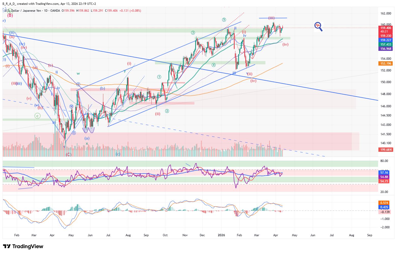 A következő időszakban emelkedésre számítunk, amelynek továbbra is az elsődleges célára 160,010, a másodlagos célár a setup célára: 160,780.