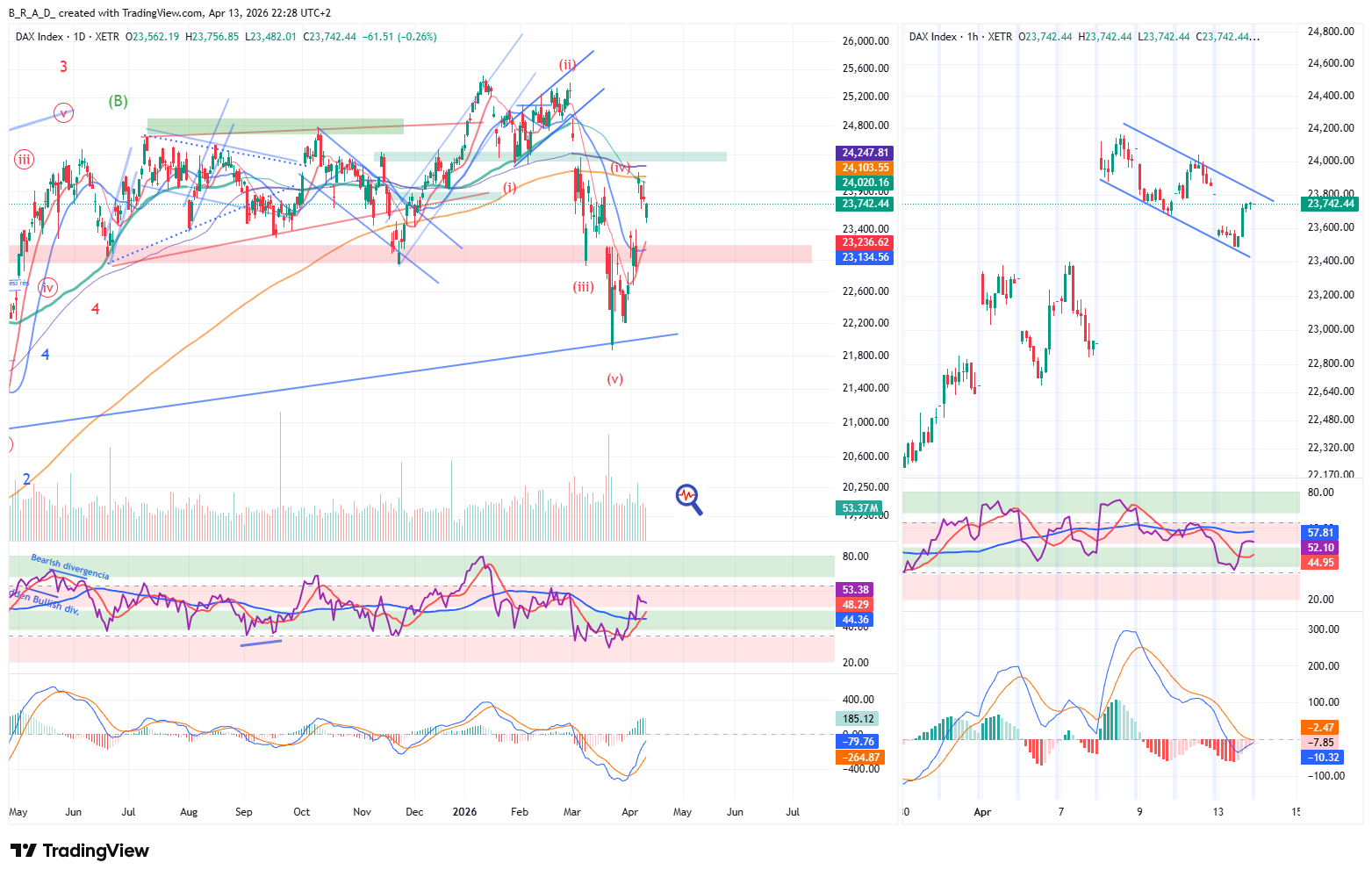 A következő napokban a csatornatetőnél egy rövidebb korrekcióra, majd további emelkedésre számítunk, az elsődleges célár 24.000, a másodlagos 24.200.