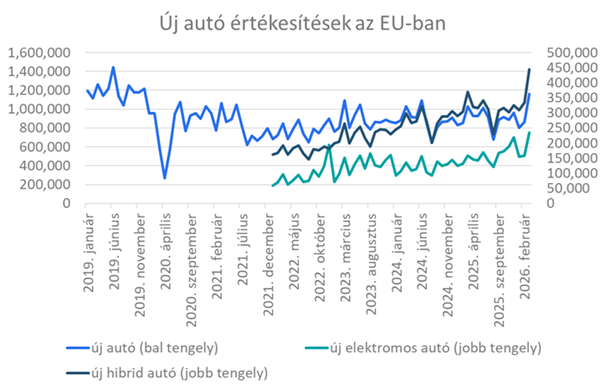 Az Európai Unióban értékesített gépkocsik száma márciusban éves szinten 12,5%-kal 1,16 millióra emelkedett. Az elektromos autók értékesítése kiugró mértékben 48,9%-kal bővült és minden ötödik gépkocsi tisztán elektromos meghajtású volt. Az elektromos autók terjedését segíti, hogy egyre olcsóbb típusok érhetők el, egyre kisebb az árkülönbség a hagyományos, vagy hibrid modellekhez képest. Sőt egyes vélemények szerint a márciusban megugró olajár is az elektromos modellek felé terelhette a vevőket.