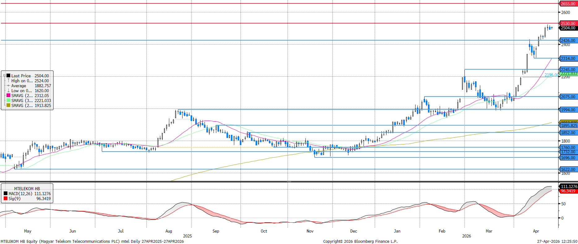 Az MTEL elérte a 2.530 forintos ellenállást, miközben az RSI indikátor 80-as értéke erős túlvettségre utal. Ezek...