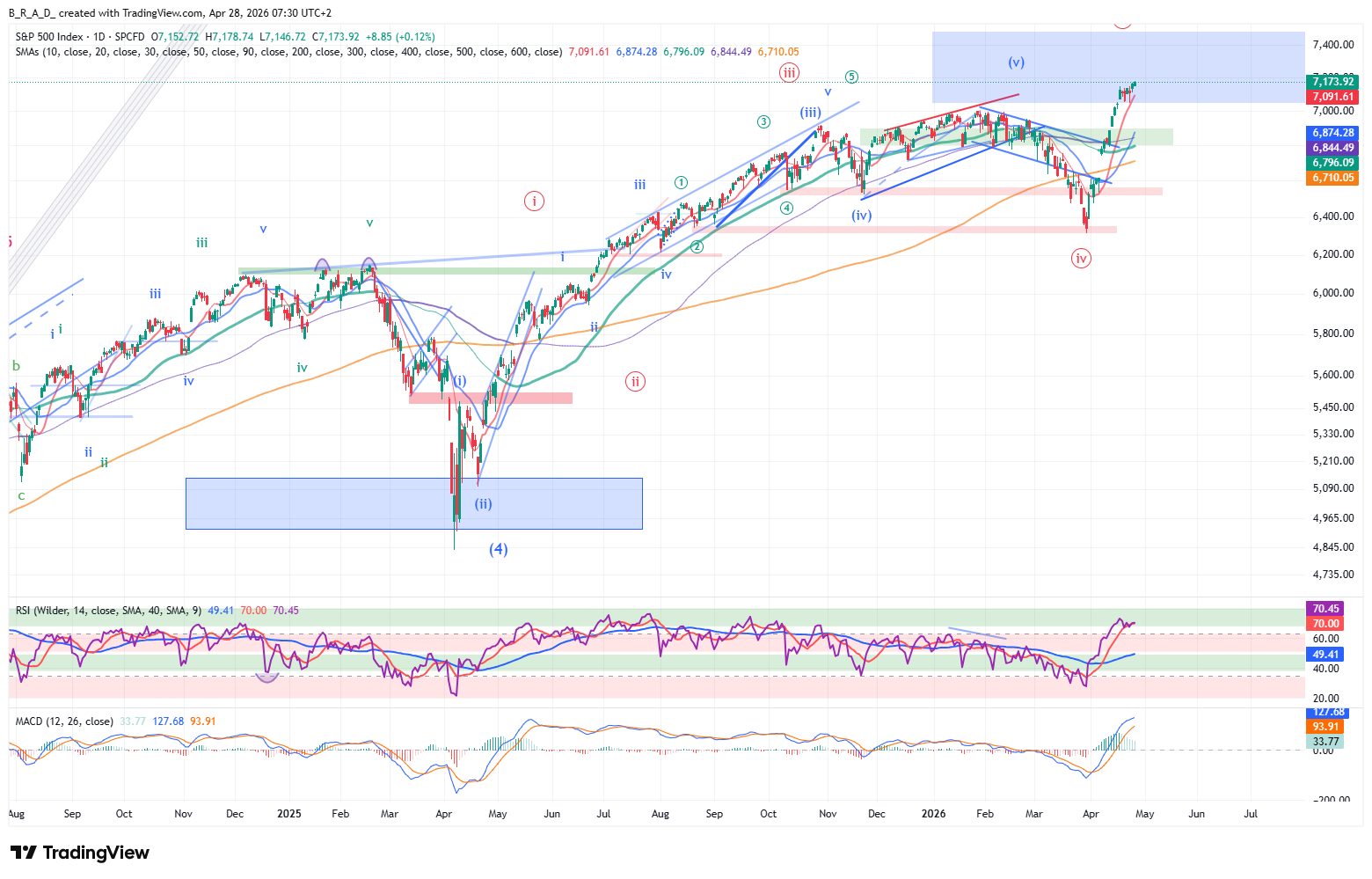 A következő időszakban az ellenálláshoz való felfutás lehetősége mellett esésre számítunk, amelynek az elsődleges célára 7.089, a másodlagos 7.030.