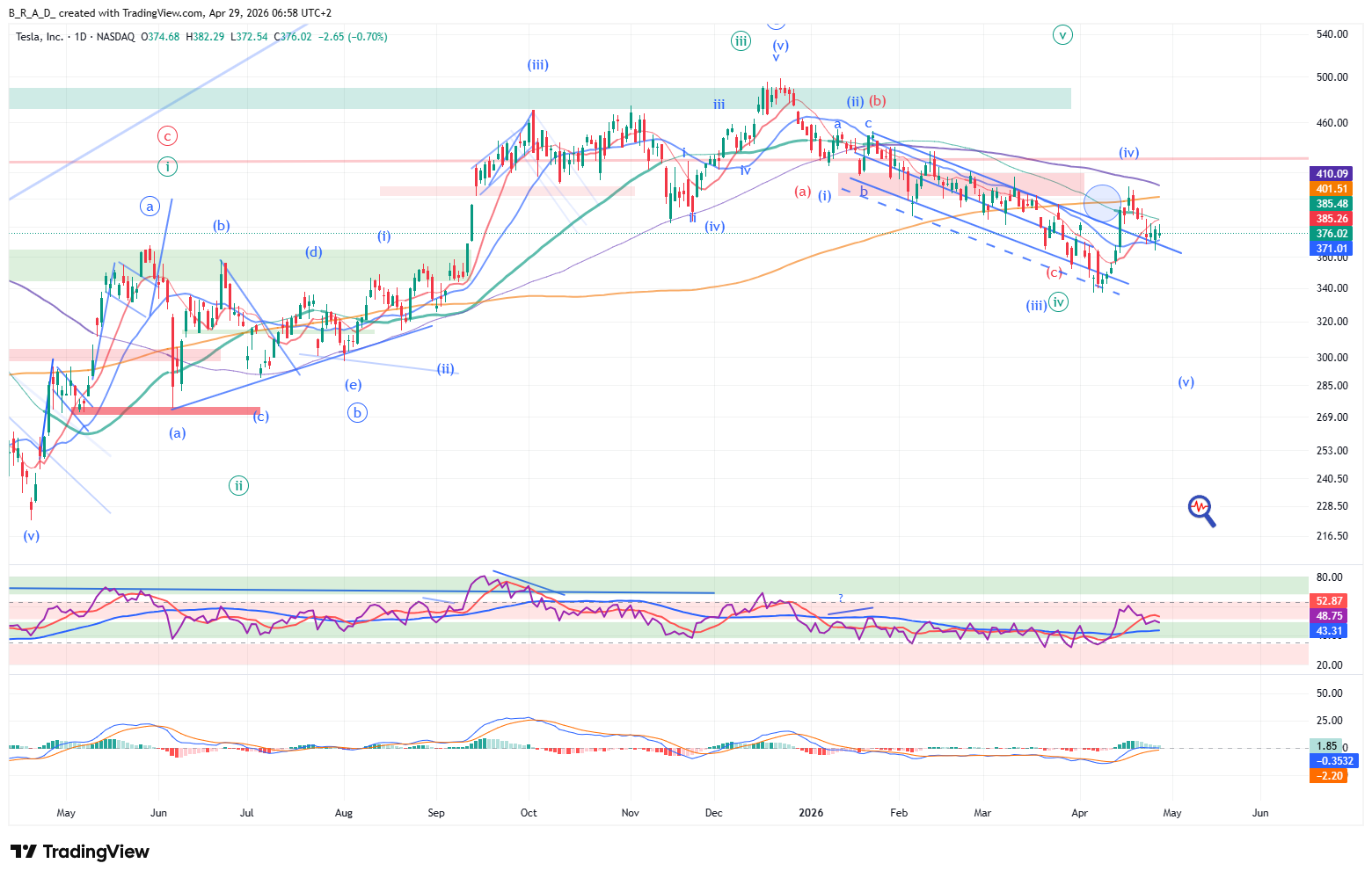 A következő időszakban emelkedésre számítunk, az elsődleges célár 389,25, a másodlagos 398,20, a harmadlagos, éles emelkedés megindulásának esetén 416.