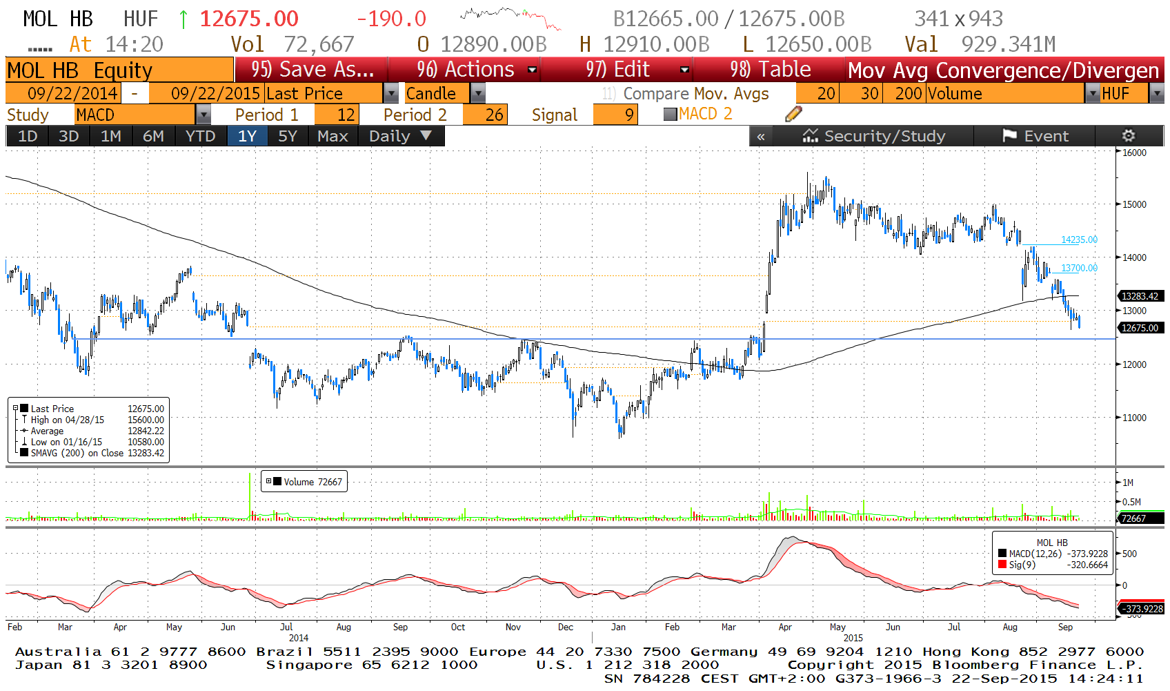 A MOL árfolyama hetek óta csökken, de az esés azt követően gyorsult be, hogy a társaság bejelentette, hogy Kurdisztánban az Akri-Bijeel blokkból lényegesen kevesebb szénhidrogén termelhető ki, mint számítottak rá, ezért csökkentik a készletbecslést is.