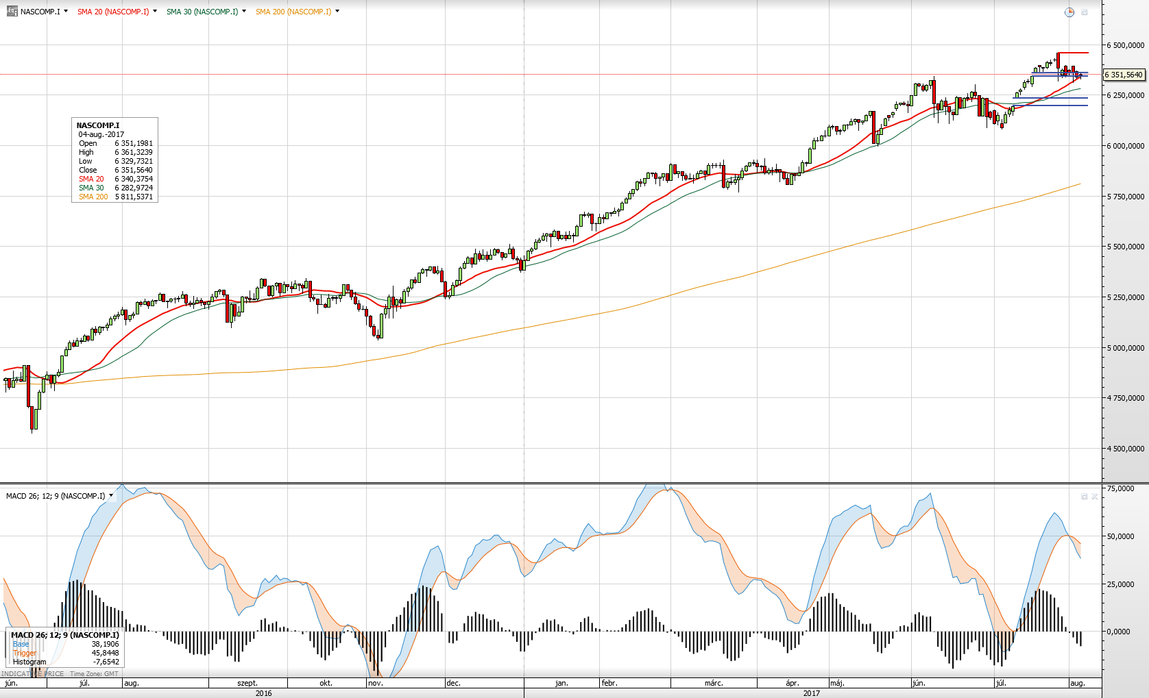 Jól viselkedik a Nasdaq a korrekcióban. Ugyan az MACD eladási jelzést adott még a múlt hét folyamán (augusztus 1-én) az árfolyam ennek ellenére oldalazott, s...