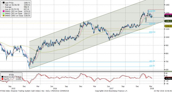 Az Orosz piac a holdon van. Abszolút másképp viselkedik, mint a világ többi része. Ugyan ez is lejött a 20 napos mozgóátlag alá, de ez inkább...