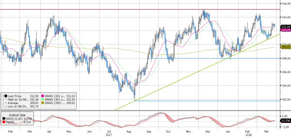 Felpattant az emelkedő trendvonalról az EUR/HUF árfolyama a múlt héten, és rögtön ezzel a lendülettel a rövidtávú mozgóátlagokat is áttörte a kurzus. Ezzel ismét megnyílt az út a 315 forintos ellenállásig.