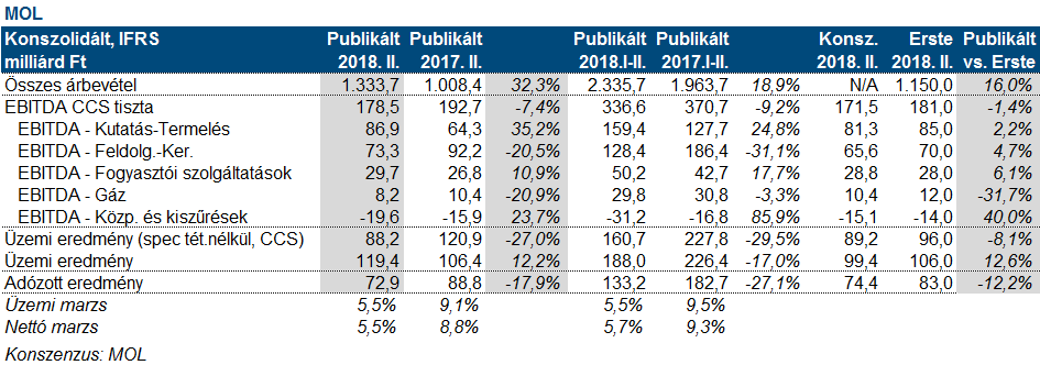 Erste kommentár A MOL 178,5 milliárd forint tisztított CCS alapú eredményt ért el a második negyedévben szemben a piaci konszenzussal (171,5 milliárd forint) és a mi várakozásunkkal (181 milliárd...