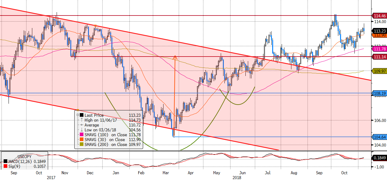 Ismét nekirugaszkodhat a kurzus a 114,5 jennél lévő ellenállásnak, miután sikerült a 30 napos mozgóátlagot nagy nehezen...