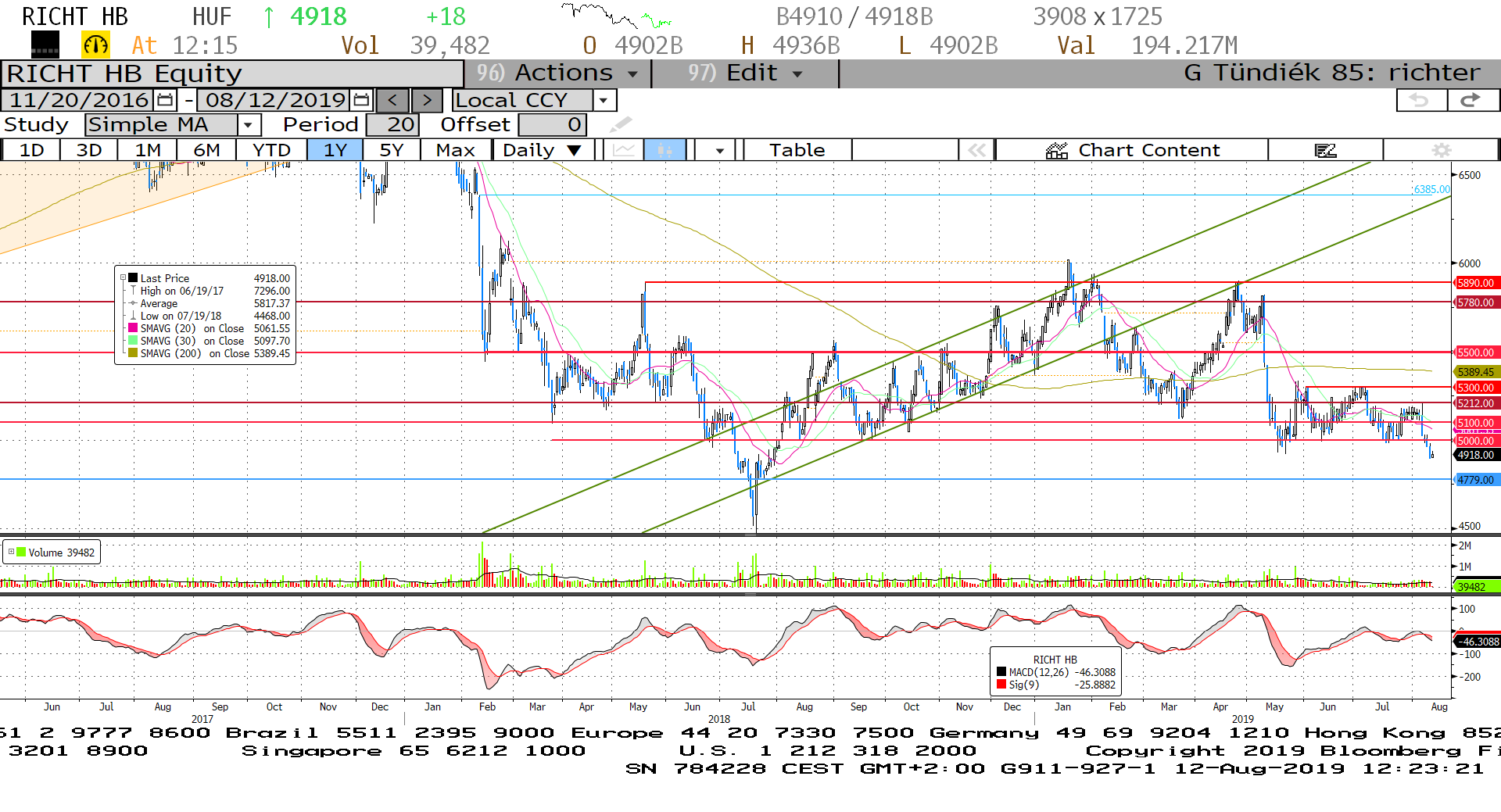 A Richter 5.000 forint alá csökkent, amivel egy erős szint esett el, így megnyílt az út az árfolyam további csökkenése előtt....