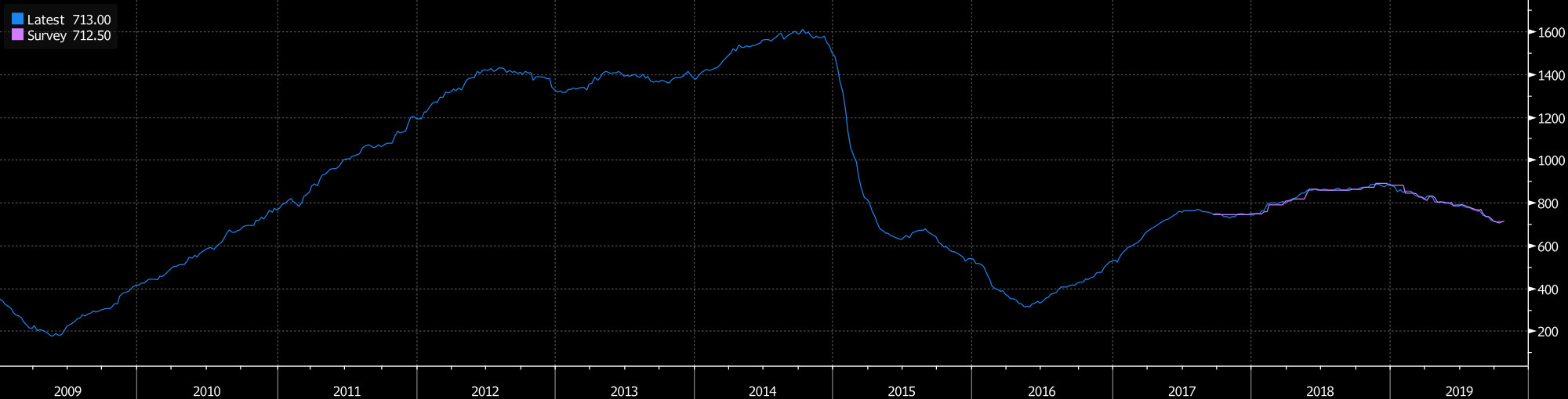 A kérdés persze, hogy egyébként ilyen alacsony olajárak mellett tényleg lehet-e tartani ezt az ütemet. A hírek szerint az USA palaolaj termelői már most nehéz helyzetben vannak, a Goldman Sach például ilyen okok miatt vágta a jövő évi USA palaolaj termelés növekedési előrejelzését 1 millió hordó/napról 700 ezer hordó/napra. A kőolaj fúróberendezések száma idén év eleje óta masszívan esik.