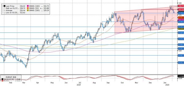 Lefordult az emelkedő trendcsatorna tetejéről az EUR/HUF kurzus az utóbbi héten, ami további csökkenésre enged következtetni. Ehhez ráadásul az MACD indikátor eladási jelzése is párosul. A folyamatot a fundamentális oldalról az MNB is megtámogatta azzal, hogy egyes intézkedéseivel a bankközi likviditás csökkenéséhez járult hozzá, ami szintén forinterősítő hatású. Egyelőre a 335,8 forintos technikai szinten tartózkodik az árfolyam, ami ha elesik a 30 napos mozgóátlagig, 334 forint környékéig nyílhat meg az út.